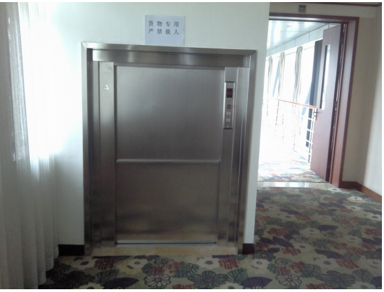 雜物電梯是服務于樓層的固定式升降設備,具有一個轎廂,就其尺寸和結構型式而言,轎廂不允許進人,轎廂運行再兩列垂直或與垂直方向傾斜角小于 15°的剛性導軌之間。供運送一些輕便的圖書、文件、食品等,但不允許人員進入轎廂,由門外按鈕控制。